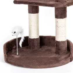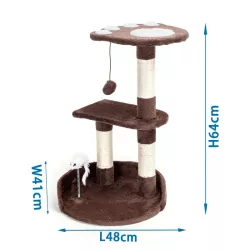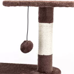 Dwupoziomowe drzewko dla kota, zaspokajające jego potrzeby skakania. Wiszące futrzane piłki do zabawy dla kotów. Drapak wykonany jest z sizalowej liny, odpornej na ścieranie i zadrapania. Pozostałe części są owinięte flanelą dla dodatkowego komfortu. Podstawa jest stabilna, wytrzymała i niełatwa do wstrząśnięcia