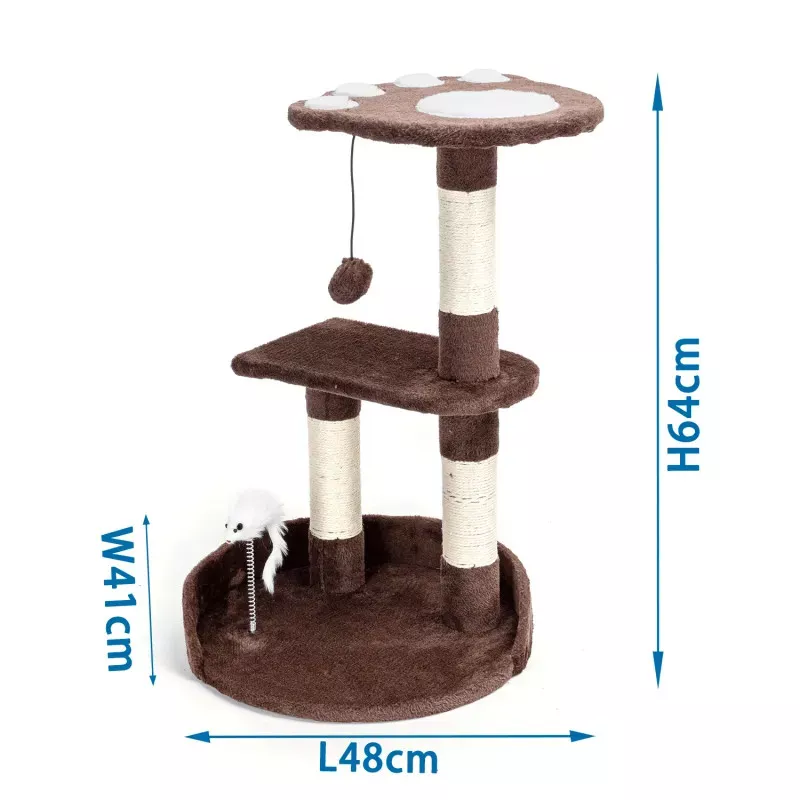Dwupiętrowe drzewko dla kota w kształcie łapy z zabawką