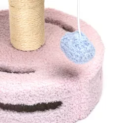 Pluszowa powierzchnia będzie wyjątkowo wygodna, a słupek do drapania owinięty został sizalowym sznurkiem. Zwisająca, pluszowa piłeczka zapewni zwierzakowi zabawę, po której będzie mógł odpocząć w strefie relaksu.