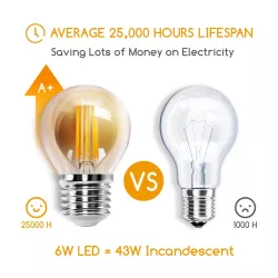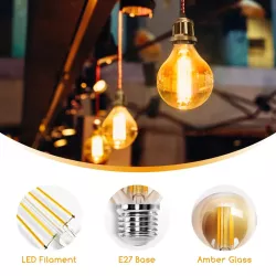 Mała kulista żarówka led o barwie bursztynowej. Jest łagodna dla oczu i nie powoduje migotania. Lampa ma opatentowaną konstrukcję obudowy, która emituje światło pod dużym kątem, redukując ciemne obszary. Jest to certyfikowany produkt, który nadaje się do różnych lamp.