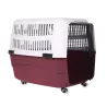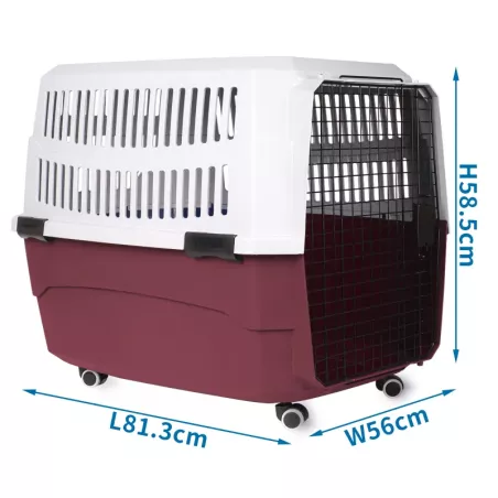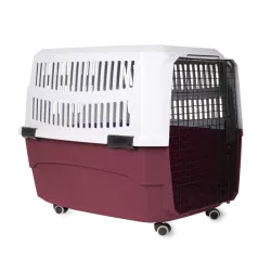 Wygodny do przenoszenia i odpowiedni do transportu lotniczego jako bagaż rejestrowany. Czterostronna wentylacja pozwala na płynny przepływ powietrza. Klamra skrzynki wykonana jest z materiału przyjaznego dla środowiska o dużej elastyczności, zapewniającego stabilniejszą konstrukcję bagażnika. Przestronne wnętrze zapewnia zwierzętom dużo miejsca na relaks i wygodne poruszanie się. Metalowe drzwi pomalowane na czarno, gładkie i odporne na ścieranie;Sprężynowy zamek drzwiowy wytrzymuje wielokrotne naciśnięcia. Uniwersalne kółka obracające się o 360° z efektem wyciszenia i dobrym zużyciem. stopień odporności, mocny i gładki.