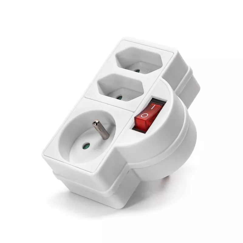 Francuski adapter trójdrożny z wyłącznikiem 2*16A + 1*2,5A biały