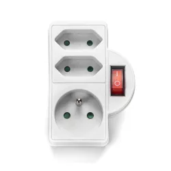 • Francuski adapter trójdrożny z wyłącznikiem 2*16A + 1*2,5A biały - 8433325196608