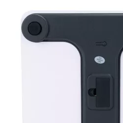 Platforma ze szkła hartowanego o wysokiej wytrzymałości. Obsługuje 3 jednostki pomiarowe (kg, funt, st-lb). Funkcja wyświetlania temperatury pokojowej. Zakres pomiaru do 180 kg. Poszerzona platforma 28x28 cm. Wyświetlacz LCD o wysokiej rozdzielczości. Antypoślizgowe podkładki pod stopy. Zaokrąglona konstrukcja chroniąca narożniki.