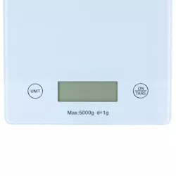 Platforma ze szkła hartowanego, wodoodporna i pyłoszczelna. Jedna funkcja tary. Obsługa 5 jednostek pomiarowych (funt,g,floz,oz,ml). Zakres pomiaru do 5 kg. Wyświetlacz LCD o wysokiej rozdzielczości. Antypoślizgowe podkładki. Zaokrąglona konstrukcja chroniąca narożniki.